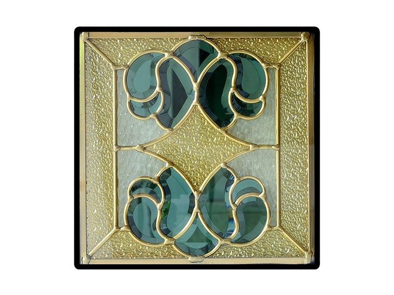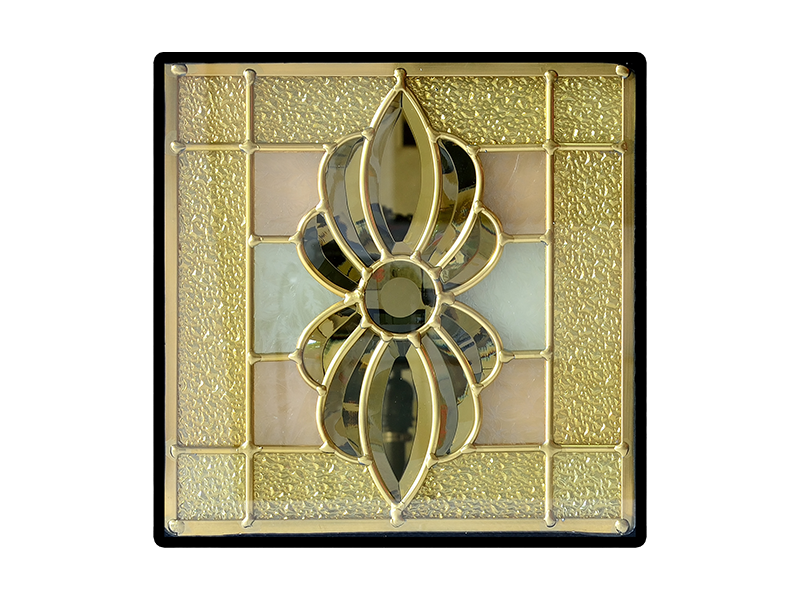 กระจกสเตนกลาส ของเราประกอบไปด้วยกระจก 3 ชั้น กระจกชั้นกลางเป็นกระจกเจียรปรีหลากหลายสีสัน ประณีต และสวยงาม นำรางทองเหลืองแท้มายึดโดยช่างผู้ชำนาญการ